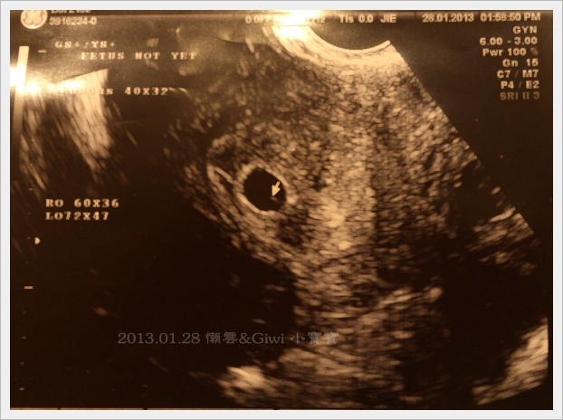 今天要做陰道超音波, 檢查時有點小緊張, 不知道小傢伙有沒有在子宮裡好好待著!! 本來檢驗師在照時說有照到一顆, 沒過多久居然說還有一顆….@@~