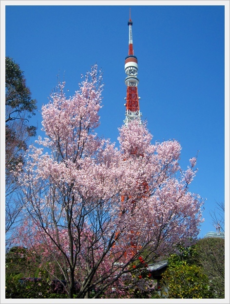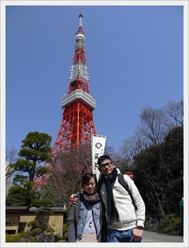 一出地鐵轉角後就可以看到晴空下的東京鐵塔,路旁小小的櫻花樹是這次行程與櫻花的初見面^^