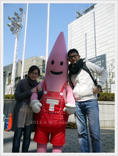居高環顧四週讓我發現在增上寺旁有株櫻花開了, 馬上改變下個行程過去拍照。在要離開東京鐵塔時發現鐵塔吉祥物Noppon兄弟,既然剛好經過就搶在小朋友之前先跟他拍張照。