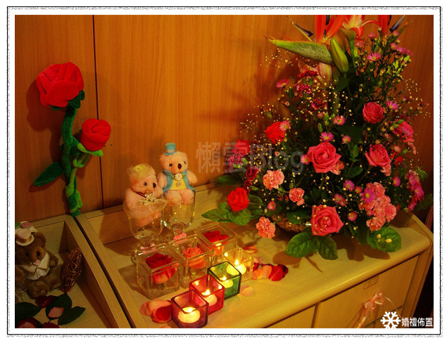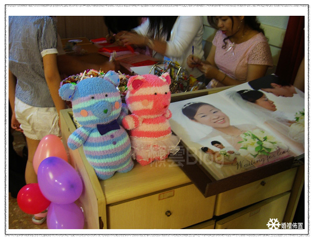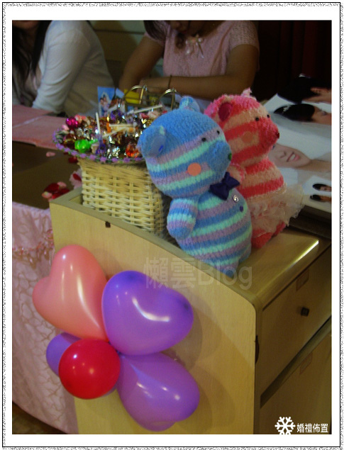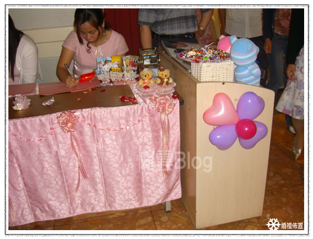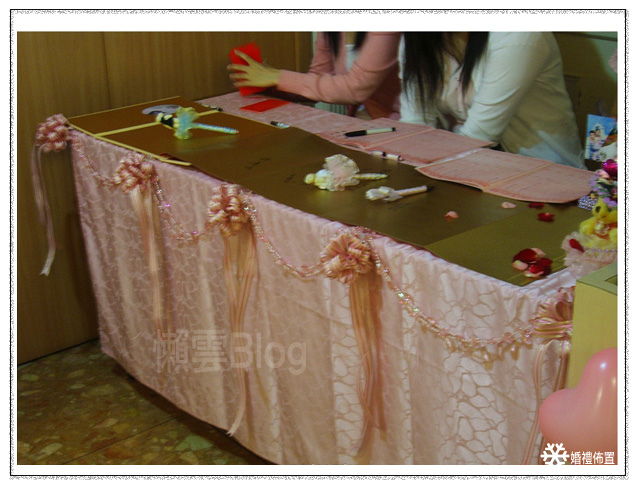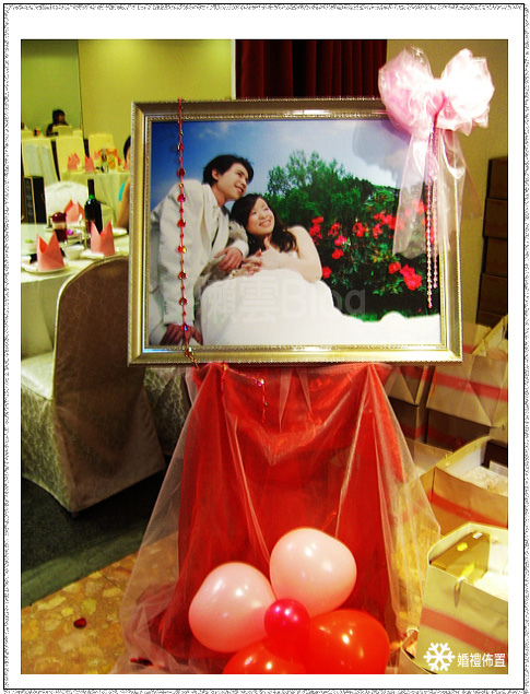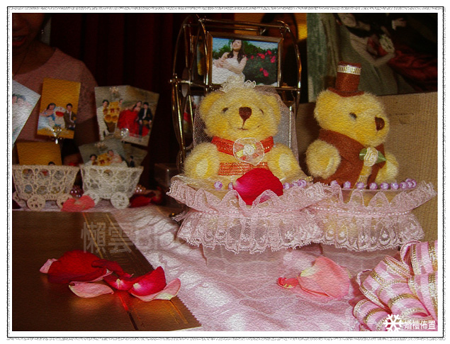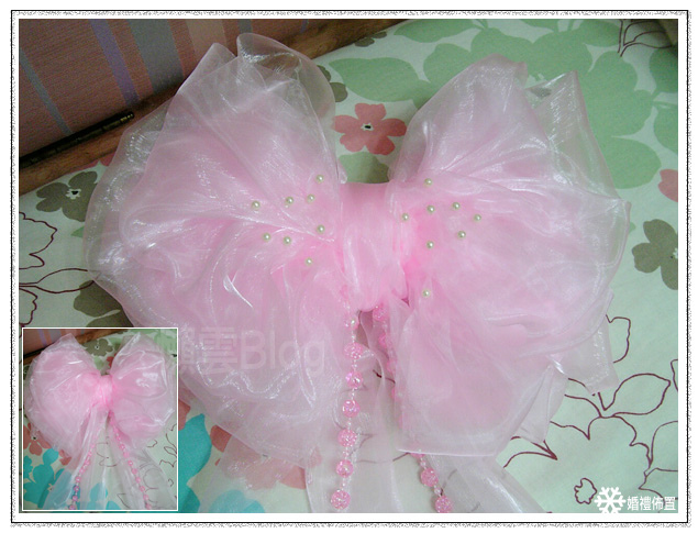 放大照區...右上角垂著粉紅色的珍珠紗蝴蝶結